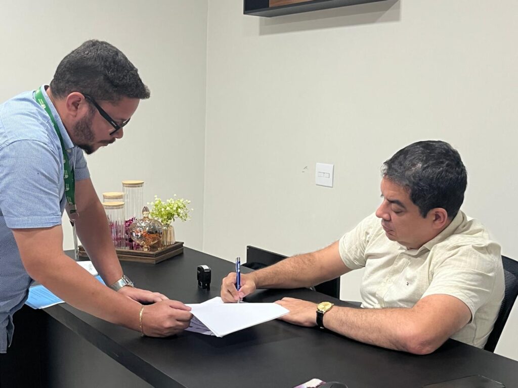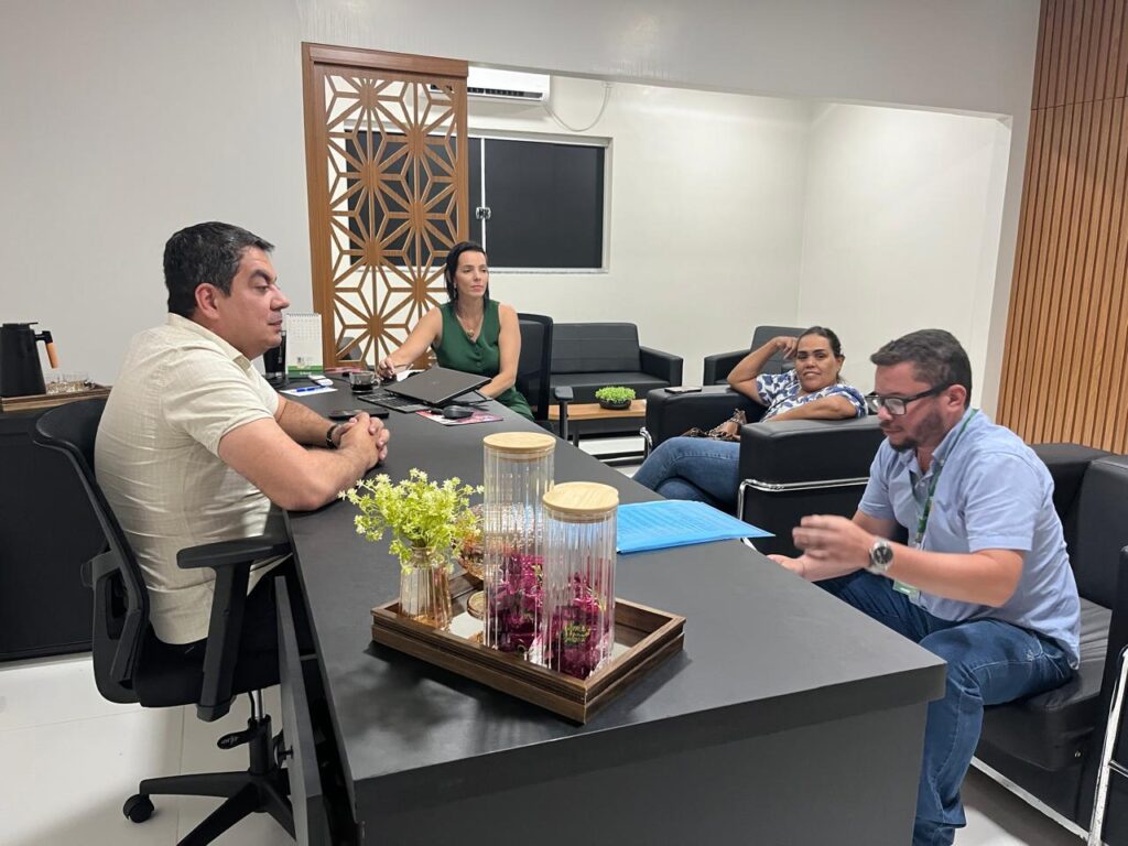 O prefeito Dr. Victor, a primeira-dama Lidiane e a secretária de Agricultura e Meio Ambiente se reuniram com o Sr. Francisco, representante da Emater-GO, para alinhar a implantação do Programa Semear Social em nosso município.